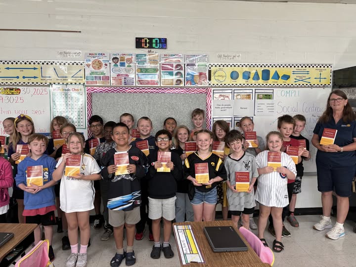 In literacy news, River Cities delivered dictionaries to Hampton Elementary school. Our group participated in Riverdale PTO Fall Fest. We joined with our Riverdale Interact Club to hand out pencils and candy. Finally, our club sold food to the IESA Sectional Cross Country meet. Coming in December, we will host Breakfast with Santa and Wreaths Across America at two cemeteries!