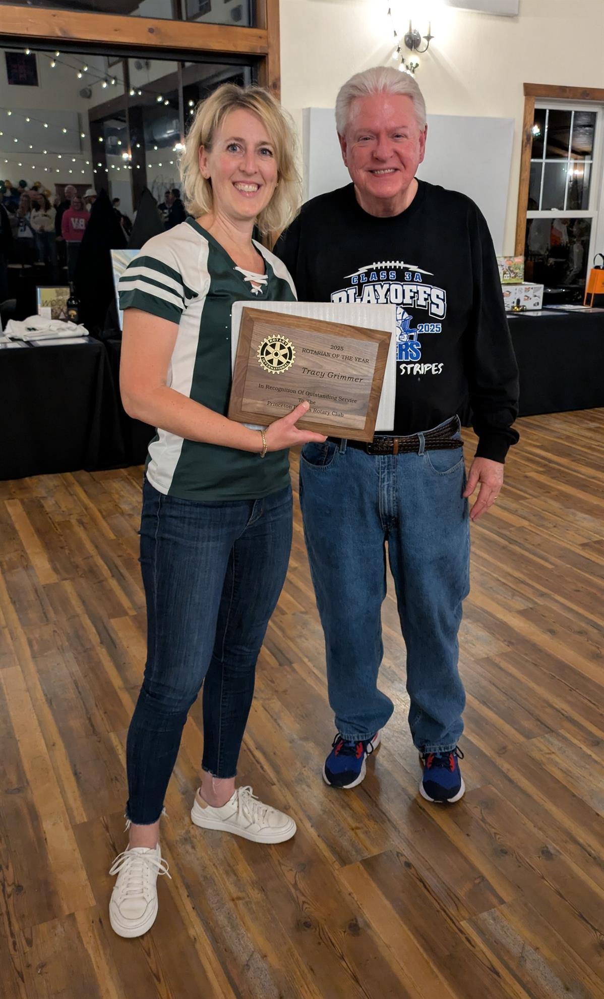 Tracy Grimmer and Pam Pratt Marsh were honored as Rotarians of the Year at Rotary Club of Princeton’s annual auction held November 15th. This award is presented to a Rotarian who exhibits service above self in their daily activities and who promotes Rotary by their action and involvement.